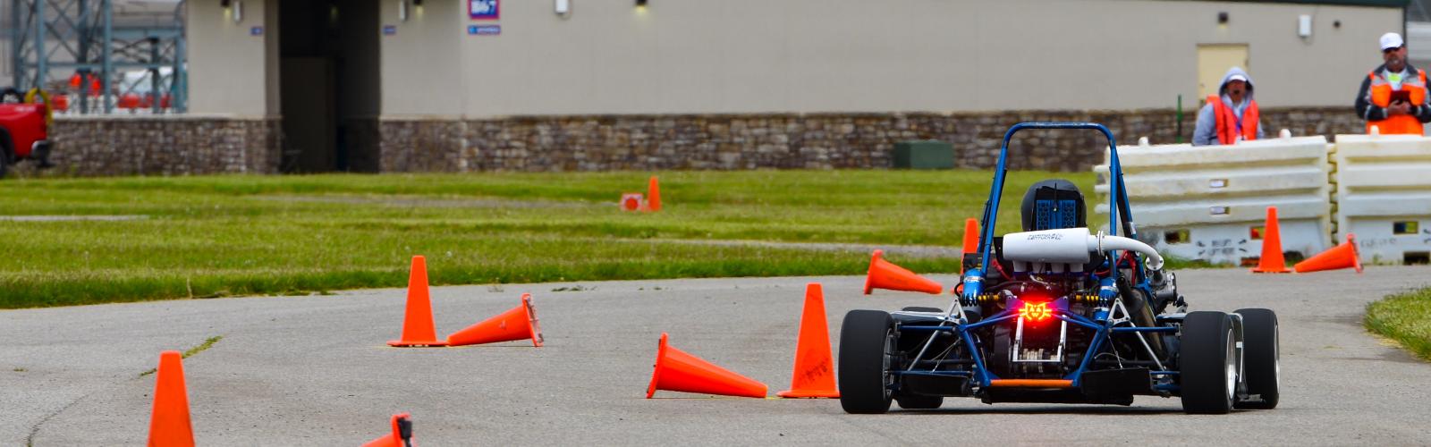 We have a large engineering team, totaling nearly 50 members across 5 different subsystems that focus on designing different aspects of the car. Members gain experience in a hands-on design and manufacturing environment following industry standards which translate into the real world degrees that give the students a competitive edge in and outside of the classroom and industry! At competition, we put our car through various trials including acceleration, skid-pad, autocross, and endurance. We also present our designs to industry experts for a scored review. In addition to the engineering aspect of the team, we also have a business case presentation that is applied to our final competition score. Our business subsystem organizes competition logistics, plans team events, obtains sponsorships, and manages business-related aspects of the team as a whole.
